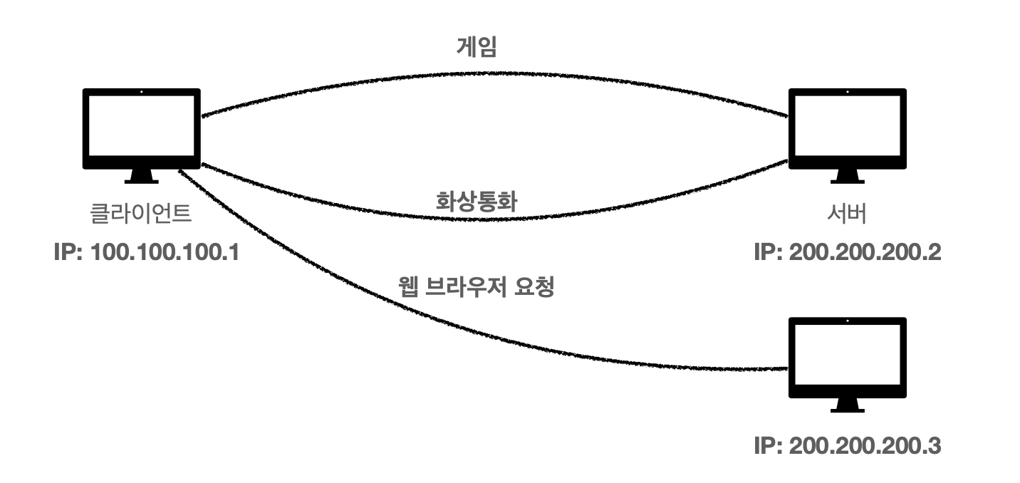 위의 IP에서 나온 한번에 여러개를 연결해야할 때의 문제를 해결하는 것이 PORT