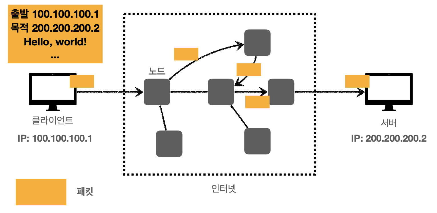 패킷(Packet)이라는 통신 단위로 데이터 전달
