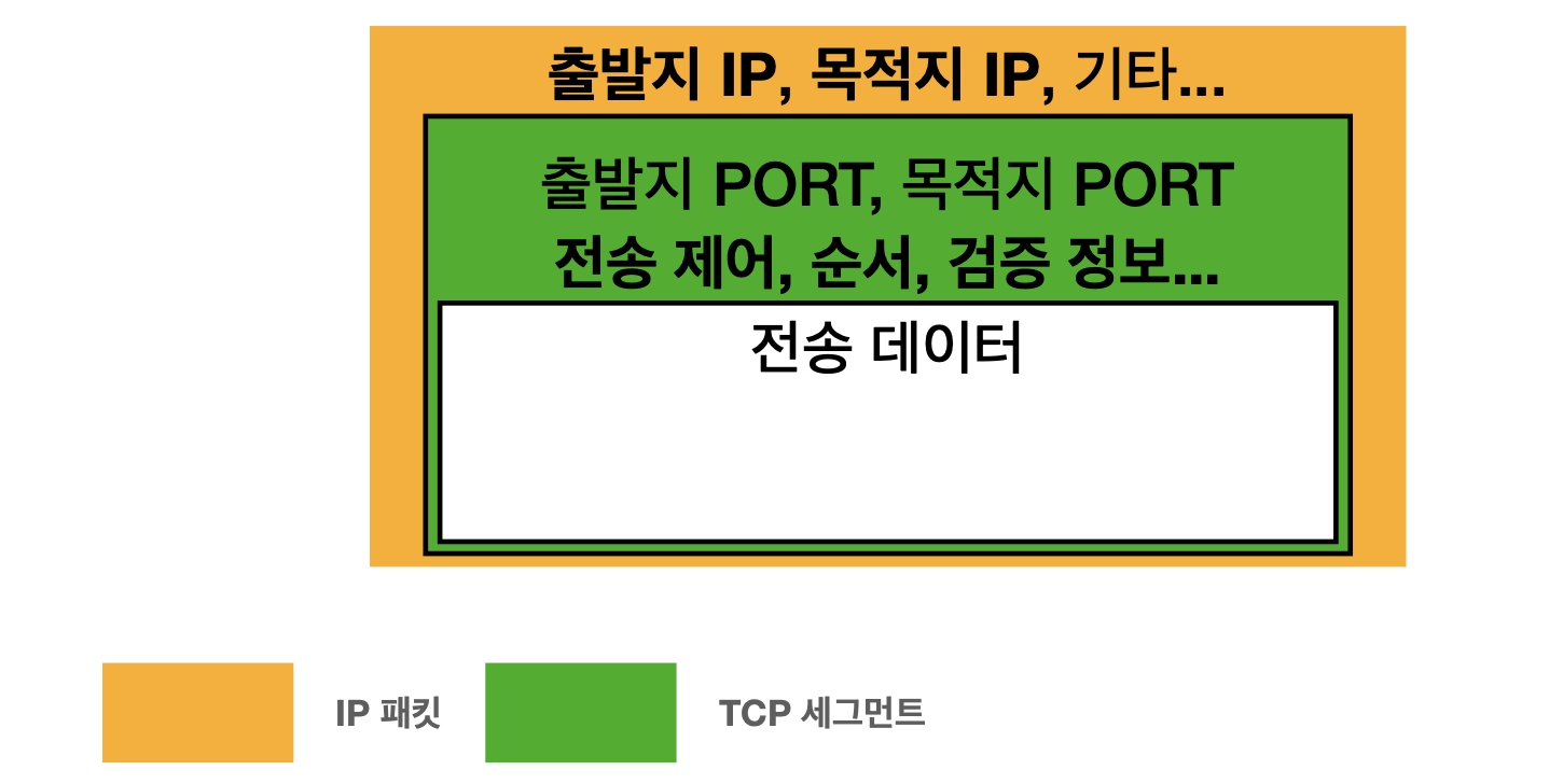 - 그 다음 하위 계층 IP(인터넷 계층)에서 패킷 생성 (TCP 데이터 포함)