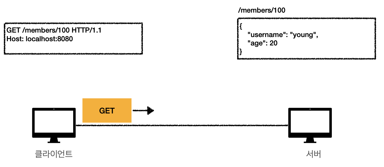 (의미는 GET방식으로 /members/100을 원한다. )